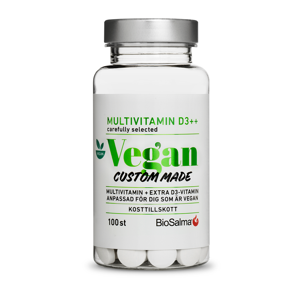 Innehåller vitamin B2 och B12 samt järn, zink, jod, selen och kalcium, som kan kan vara svårare att få i sig tillräckligt av som vegan och vegetarian. I norr har vi extra stort behov av D-vitamin från kost och därför ingår detta i våra multivitaminer.