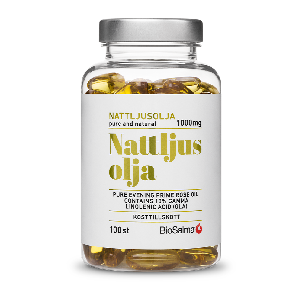 Nattljusolja, även kallad jättenattljusolja, innehåller 1000 mg nattljusolja per kapsel, varav 10% är GLA (gammalinolensyra). Produkten