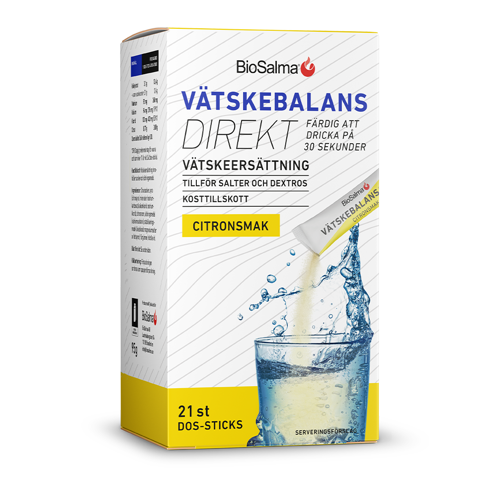 Kosttillskott som tillför vätska och salter. Pulvret med de aktiva ingredienserna är förpackade i dos-sticks och löser sig på ca 30 sekunder i vatten, vilket gör att du snabbt kan dricka vätskeersättningen när du behöver. Finns även med hallonsmak.
