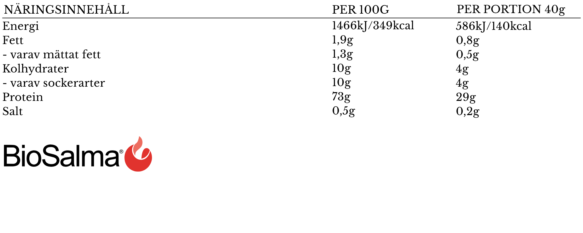 I BioSalma® Full Protein 80 har vi kombinerat det bästa av två världar – vassleprotein för muskeluppbyggnad och hydrolyserade kollagenpeptider. Kollagen förekommer naturligt i kroppens bindväv, hud och leder. Den ger en len och läskande proteindryck med frisk jordgubbs- och vattenmelonsmak, perfekt efter träning eller som ett extra proteintillskott när som helst under dagen.