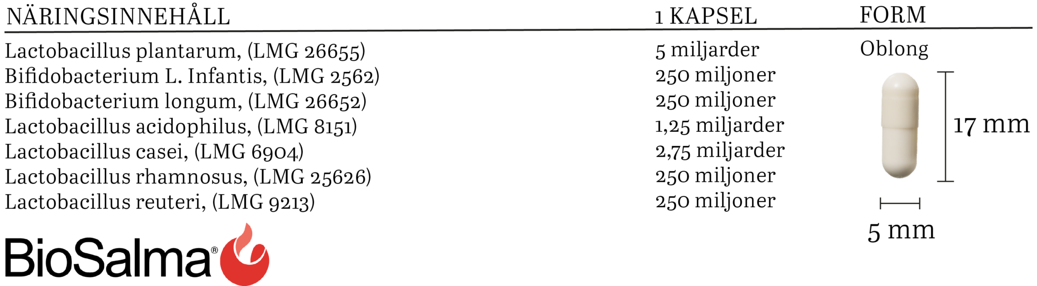 Mjölksyrabakterier är ett kosttillskott med 10 miljarder mjölksyrabakterier i varje kapsel från 7 olika stammar. Kapselskalet är magsyraresistent så mjölksyrabakterierna kan passera magsäcken och nå tunntarmen utan påverkan från magsyran.